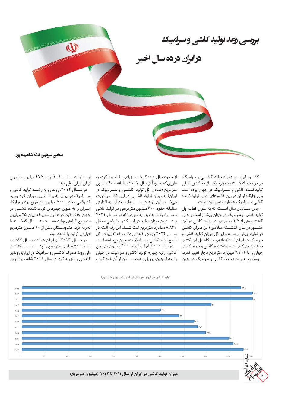 نمایشگاه صنعت کاشی و سرامیک یزد از تایرخ 7 الی 10 آذرماه 1402 در محل نمایشگاه های بین المللی شهر یزد برگزار شد و شرکت کنندگان در این نمایشگاه آخرین نوآوری های خود را به نمایش گذاشتند.
