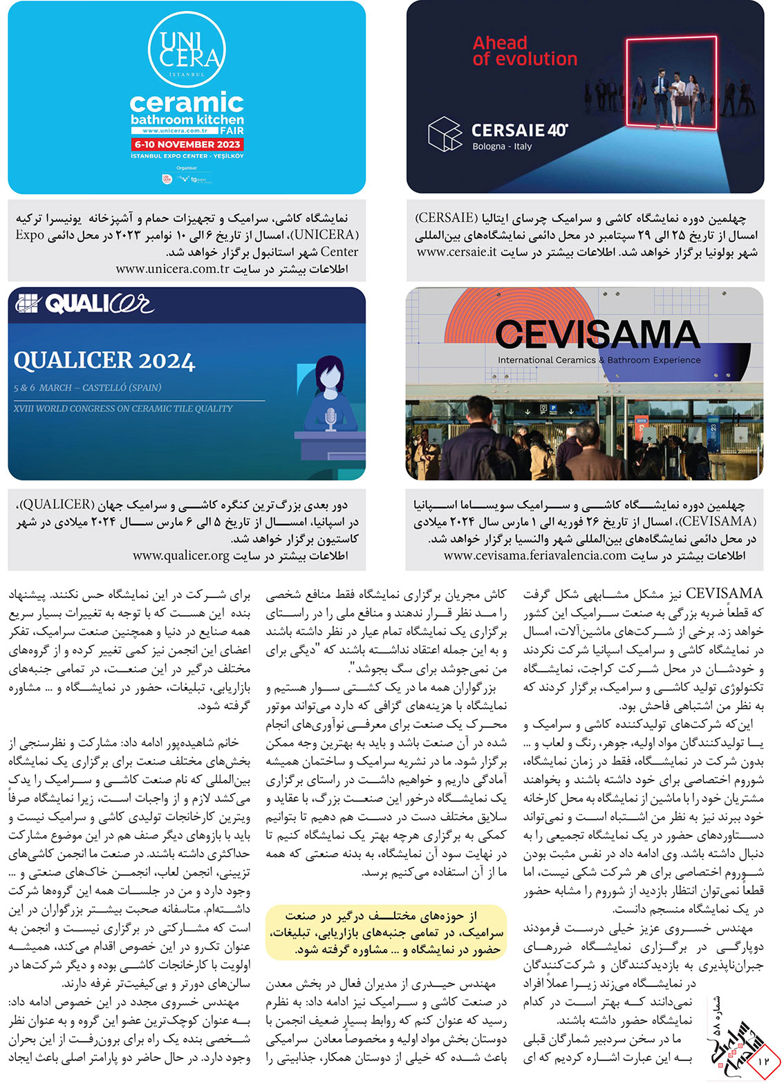 - تاریخ نمایشگاههای پیش روی صنعت کاشی